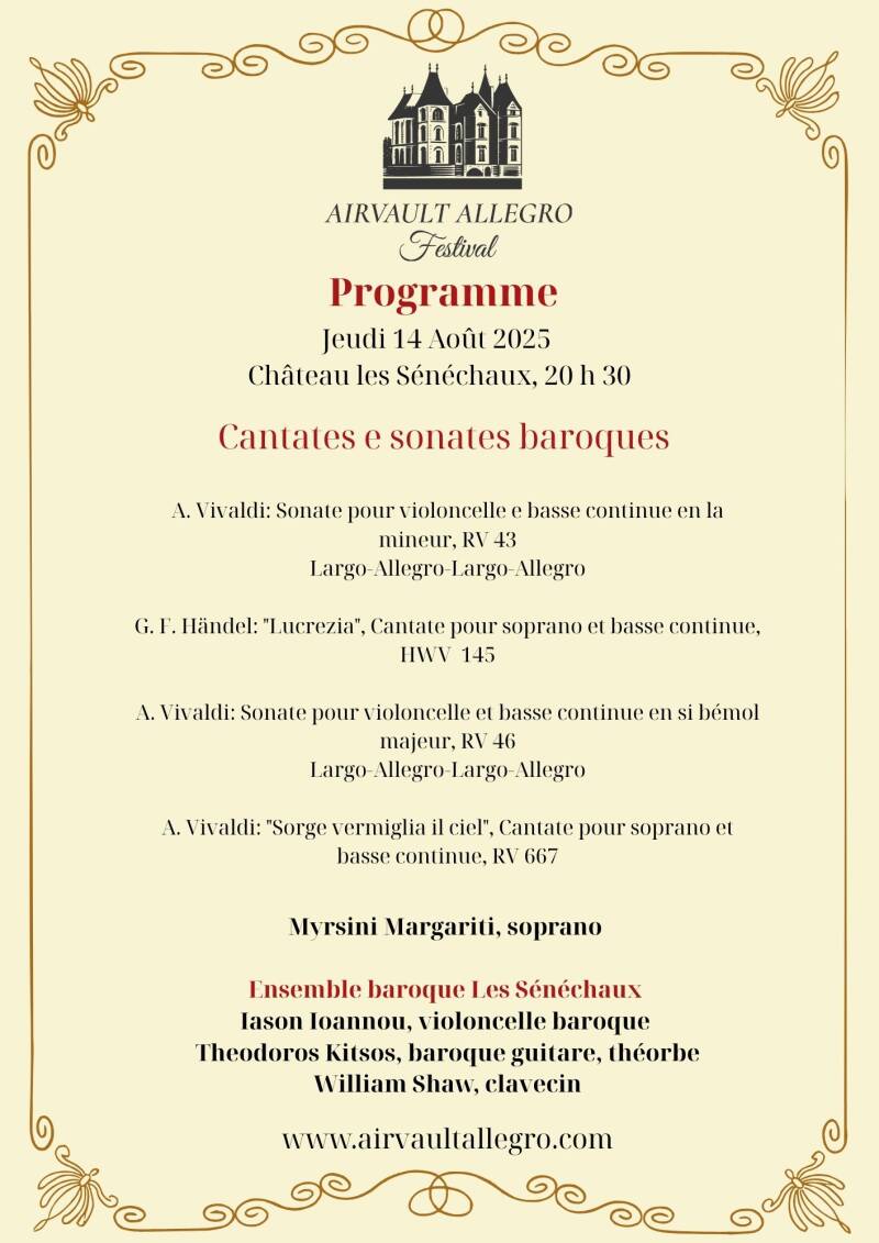 Baroque ensemble Les Sénéchaux is created especially as the resident ensemble of the AIRVAULT ALLEGRO Festival. It consists of some of today's greatest specialists of baroque music, who appear regularly in many of the world's most prestigious venues.